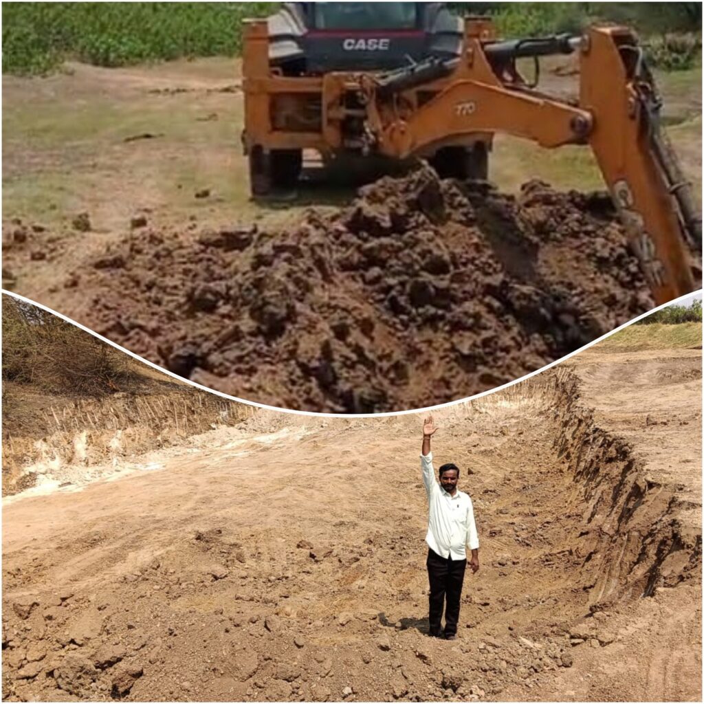 ఇల్లందకుంట(ధనాధన్ న్యూస్)మే12:ఇల్లందకుంట మండలం కనగర్తి గ్రామానికి చెందిన చెరువులో కంచె గోవర్ధన్ అనే వ్యక్తి ఎలాంటి అనుమతులు లేకుండా ప్రభుత్వ నిబంధనలకు విరుద్ధంగా చెర్లమట్టిని గృహాలకు తరలిస్తున్నారు.ఈ విషయమై మండలాధికారులు ఎన్నిసార్లు ఫిర్యాదు చేసినా కానీ చూసి చూడనట్టు వ్యవహరిస్తున్నారని జిల్లా కాంగ్రెస్ పార్టీ ఫిషర్ మెన్ చైర్మన్ బండి మల్లేష్ అన్నారు.కనగర్తి గ్రామానికి చెందిన చెర్లు కుంటలను 2022 నుండి రెండు సంవత్సరాలుగా దొంగతనంగా చెరువులోని మట్టిని అమ్ముకుంటూ అధికారులను రాజకీయ పార్టీ నాయకులకు ముడుపులు అప్పచెప్పుతూ చెరువులను అన్యక్రాంతం చేస్తున్నాడని ఇప్పటికైనా జిల్లా అధికారులు స్పందించి అతనిపై చట్టపరమైన చర్యలు తీసుకోవాలని మల్లేష్ కోరారు.చెర్లలో మట్టి తీసే జెసిబి,ట్రాక్టర్లకు సరైన పత్రాలు లేవని గ్రామాలలో విచ్చలవిడిగా అక్రమ మట్టి మాఫియా గ్రామాల్లో కొనసాగుతుందని ప్రతి సంవత్సరం ఎండాకాలం వచ్చిందంటే చెరువులో నీరు ఎండిపోగానే ఈ అక్రమ మట్టి మాఫియాకు తెరతీస్తూ గ్రామంలో ఉన్న చెర్లను నిబంధనలకు విరుద్ధంగా మట్టి తీసి తలిస్తున్నారని అన్నారు.ఈ విషయమై తక్షణమే ప్రభుత్వ అధికారులు ఎలాంటి పత్రాలు లేని వాహనాలను స్విచ్ చేసి వారిపైన చట్టపరమైన చర్యలు తీసుకోవాలని మల్లేష్ కోరారు.
