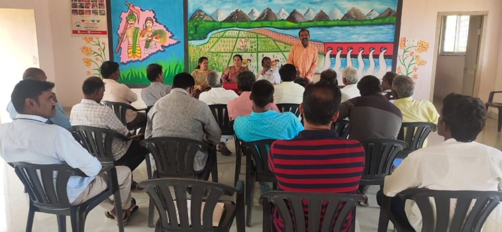 వెన్నంపల్లి గ్రామ రైతు వేదికలో మంగళవారం రోజున కేవీకే జమ్మికుంట శాస్త్రవేత్త శ్రీనివాస్ రెడ్డి రైతులకు వరి మరియు మొక్కజొన్న పంటల ఎరువుల యాజమాన్యం,వాటిలో వచ్చు వివిధ రకాల పురుగులు,తెగుళ్ల యాజమాన్యం మీద అవగాహన కార్యక్రమం కల్పించడం జరిగింది.డిడిఏ,ఎఫ్టిసి చత్రునాయక్ రైతులకు సేంద్రీయ వ్యవసాయం, సేంద్రీయ వ్యవసాయం చేయడం వలన నేలకు,రైతుకు కలిగే లాభాల గూర్చి వివరించడం జరిగింది.ఈ కార్యక్రమంలో ఎంఏవో వైదేహి,ఏఈవో రజిత గ్రామ రైతులు పాల్గొన్నారు.