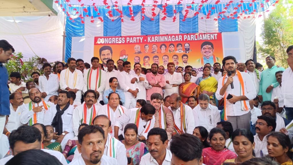కరీంనగర్(ధనాధన్ న్యూస్)ఏప్రిల్ 14:బీజేపీ ప్రభుత్వం గత 10 సంవత్సరాలకాలంలో ప్రజా వ్యతిరేక విధానాలు,తెలంగాణ రాష్ట్రానికి చేసిన అన్యాయం,కేంద్ర ప్రభుత్వ వైఫల్యాలలు మరియు విభజన చట్టంలో ఆమలు కాని హామీలపై ఆదివారంనాడు కరీంనగర్ లో బీసీ మరియు రవాణాశాఖ మంత్రి పొన్నం ప్రభాకర్ చేపట్టిన నిరసనదీక్షలో హుజురాబాద్ నియోజకవర్గ కాంగ్రెస్ పార్టీ ఇంచార్జి వొడితల ప్రణవ్ పాల్గొన్నారు.ఈ సంధర్బంగా అయన మాట్లాడుతూ కౌశిక్ రెడ్డి నియోజకవర్గంలో ఉండక, ఉనికి కోసం పక్క నియోజకవర్గంలో వెళ్లి సినిమా డైలాగులు కొడుతున్నాడు.ముఖ్యమంత్రి రేవంత్ రెడ్డి మీద మంత్రుల పైన విమర్శలు చేస్తూ తిరుగుతున్నాడు.పెద్దవాళ్ళను విమర్శిస్తే పెద్ద పేరు వస్తుంది అనుకుంటే పొరపాటు,దేనికైనా ఓ స్థాయి ఉండాలనే విషయం కౌశిక్ రెడ్డి తెలుసుకుంటే మంచిదని అన్నారు.బిజెపి పార్టీ అంటే