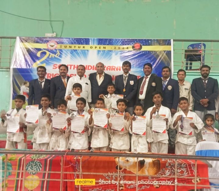 ఆంధ్రప్రదేశ్ రాష్ట్రంలోని గుంటూరులో గల ఇండోర్ స్టేడియంలో ఆదివారం జరిగిన సౌత్ ఇండియా నేషనల్ కరాటే ఛాంపియన్ షిప్ పోటీలలో కరీంనగర్ జిల్లా హుజురాబాద్ పట్టణంకు చెందిన కరాటే మాస్టర్ ఎస్కే జలీల్ ఆధ్వర్యంలో కరాటే శిక్షణ పొందిన ఇద్దరు విద్యార్థులు అత్యంత ప్రతిభ కనబర్చి బహుమతులు సాధించినట్లు కరాటే మాస్టర్ జలీల్ తెలిపారు.ఈ కరాటే పోటీలలో వివిధ రాష్ట్రాలైన కేరళ, కర్ణాటక,మహారాష్ట్ర,ఆంధ్రప్రదేశ్, తెలంగాణల నుండి సుమారు 500 మంది కరాటే విద్యార్థులు పాల్గొన్నారన్నారు.హుజురాబాద్ చెందిన ఎస్. షాదుల్లాబాబా 11 సంవత్సరాల విభాగంలో కటాస్ లో సిల్వర్ మెడల్ సాధించగా,8 సంవత్సరాల విభాగంలో మొహమ్మద్ లతీఫ్ బాబా కటాస్ లో గోల్డ్ మెడల్ సాధించారన్నారు.సౌత్ ఇండియా నేషనల్ కరాటే ఛాంపియన్ షిప్ పోటీలల్లో హుజురాబాద్ నుండి పాల్గొని బహుమతులు సాధించిన షాదుల్లా బాబా,లతీఫ్ బాబా అనే విద్యార్థులను,కరాటే మాస్టర్ ఎస్కే జలీల్ ను రిటైర్ ఎంఈఓ గొట్టే జమదగ్ని, మార్కెట్ కమిటీ మాజీ సభ్యుడు మహమ్మద్ ఖాలీద్ హుస్సేన్,నాయకులు ఉప్పు శ్రీనివాస్ పటేల్,మొహమ్మద్ అలీం,ఇప్పలపల్లి చంద్రశేఖర్,రావుల రాజేష్ లు అభినందించి హర్షం వ్యక్తం చేశారు.