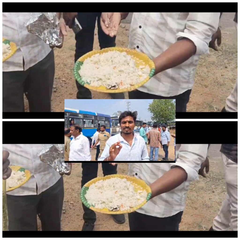 నాణ్యత లేని ఆహారం: అందించిన బిర్యానీ అన్నం మాడిపోయి, సరిగ్గా ఉడకలేదని రైతులు వాపోయారు.
