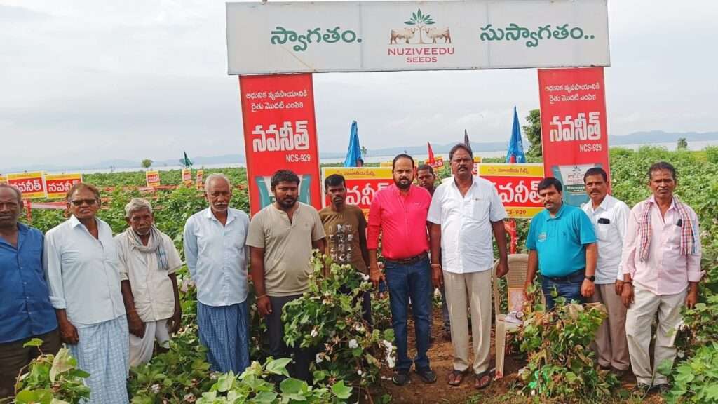 రాజన్న సిరిసిల్ల/ధనాధన్ న్యూస్: రాజన్న సిరిసిల్ల జిల్లా బోయిన్పల్లి మండలం కొదురుపాక గ్రామానికి చెందిన రైతు కొనుకటి లక్ష్మారెడ్డి పత్తి క్షేత్రానికి వచ్చిన రైతులతో నూజివీడు సీడ్స్ రీజినల్ సేల్స్ మేనేజర్ జె.శ్రీకాంత్ రెడ్డి మాట్లాడుతూ నవనీత్ పత్తి స్వల్ప కాలిక పంట,అన్ని రకాల నేలలకు అనుకూలమని,రసం పీల్చుపురులను తట్టుకుంటుందని,దగ్గర దగ్గర కాపు, పెద్దపెద్ద కాయలు,80 శాతం పత్తి మొదటి రెండు తీతలోనే వచ్చునని, పత్తి తీయటము సులువుగా ఉండడం వలన లేబర్ ఖర్చు తక్కువ అవుతుందని తద్వారా రైతుకు అధిక ఆదాయం పొందవచ్చునని తెలిపారు, స్థానిక రైతు లక్ష్మారెడ్డి మాట్లాడుతూ తన చేనులో ఒక్క చెట్టుకు 60 నుంచి 80 కాయలు ఉన్నాయని దాదాపు 12 నుంచి 15 క్వింటాల్ దిగుబడి వస్తుందని తెలిపారు, వచ్చే వాన కాలంలో రైతులు అధిక మొత్తంలో సాగు చేయవలసిందిగా కోరారు,ఈ కార్యక్రమంలో చుట్టుపక్కల గ్రామాల రైతులు 220 మంది మరియు గ్రామ పెద్దలు, కంపెనీ ఏరియా మేనేజర్ నీల రాజు, మార్కెటింగ్ డెవలప్మెంట్ ఆఫీసర్ గంగరాజు, మారుతి తదితరులు పాల్గొన్నారు.