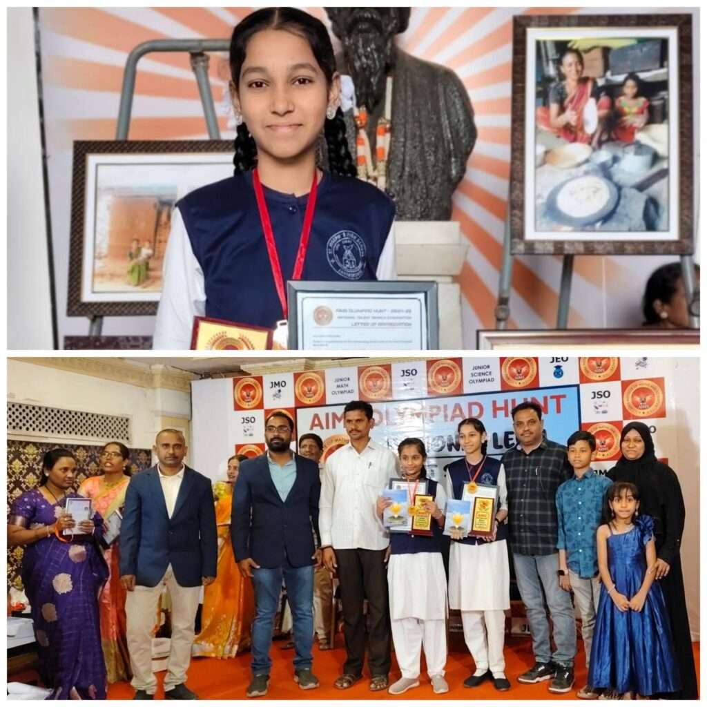 జమ్మికుంట/ధనాధన్ న్యూస్: రాష్ట్రవ్యాప్తంగా వివిధ పాఠశాలల్లో ఏడవ తరగతి నుండి పదవ తరగతి వరకు విద్యార్థులకు ఎయిమ్స్ ఒలంపియాడ్ హంట్ వారు నిర్వహించిన వివిధ ప్రామాణిక పరీక్షల్లో పోటీపడి జమ్మికుంట సెయింట్ జోసెఫ్ స్కూల్ కు చెందిన 8వ తరగతి విద్యార్థిని నిహా తన్నజ్ స్టేట్ 5వ ర్యాంక్ సాధించింది. ఇదే స్కూల్ కు చెందిన 7వ తరగతి విద్యార్థిని కే. విశ్వశ్రీ జోనల్ లెవల్ లో 9వ ర్యాంక్ సాధించింది. ఎయిమ్స్ ఒలంపియాడ్ హంట్ ఫైనల్ విన్నర్లుగా నిలిచిన వీరికి ఈ రోజు హైదరాబాద్ రవీంద్ర భారతిలో ఘనంగా సన్మానం చేసి ప్రశంసా పత్రాలను అందించారు. ఈ కార్యక్రమంలో ముఖ్యఅతిథిలుగా ప్రముఖ మోటివేషనల్ స్పీకర్ కడియాల ప్రభాకర్ రావు, గుడ్ షెఫర్డ్ & యూనిక్ చిల్డ్రన్ కేర్ వ్యవస్థాపకులు ఎండి ఖలీముల్లాఖాన్ పాల్గొని విద్యార్థులను సన్మానించారు. ఈ సందర్భంగా వారు మాట్లాడుతూ రాబోయే తరంలో డాక్టర్లుగా , ఇంజనీర్లుగా సేవనందించే మీరు ఉన్నత విలువలు, క్రమశిక్షణ పాటిస్తూ ఇష్టపడి చదవాలని మీకు, మీ తల్లిదండ్రులకు, గురువులకు మంచి పేరు తీసుకురావాలని అన్నారు.