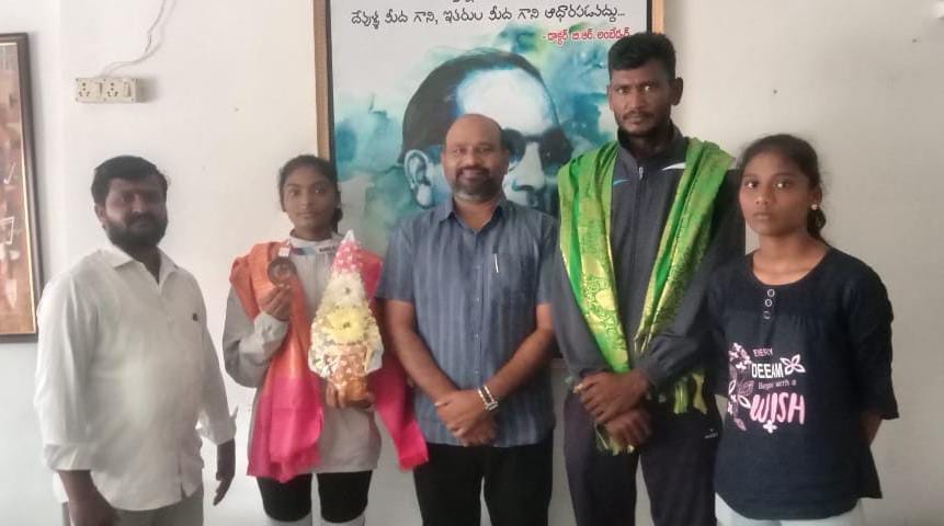 బ్రాంజ్ మెడల్ సాధించిన క్రీడాకారిణి అక్షిత కి ఘన సన్మానం