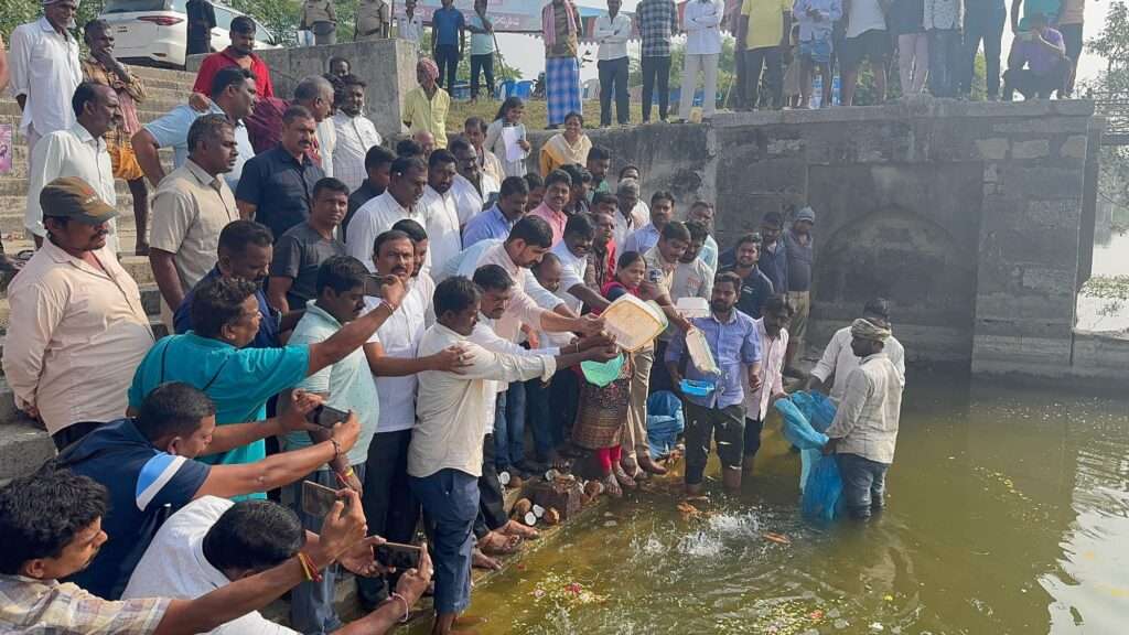 కమలాపూర్/ధనాధన్ న్యూస్: గత ప్రభుత్వంతో పోల్చుకుంటే సగం కూడా చేపల పంపిణీ చేయలేదని, రేవంత్ రెడ్డి ప్రభుత్వం మత్స్యకారులకు పంపిణీ చేయాల్సిన చేపల విషయంలో పూర్తిగా వివక్ష చూపిస్తుందని హుజురాబాద్ ఎమ్మెల్యే వాడి కౌశిక్ రెడ్డి ఆరోపించారు. శనివారం హుజరాబాద్ నియోజకవర్గం లోని కమలాపూర్ మండలం లో చేపల పంపిణీ కార్యక్రమంలో భాగంగా ఆయన మత్స్యకారులను ఉద్దేశించి మాట్లాడారు. హుజురాబాద్ నియోజకవర్గం లో 283 చెరువులు ఉన్నాయని అన్నారు. గతంలో కమలాపూర్ లో 16 లక్షల చాపలు వేస్తే ఈసారి కేవలం ఎనిమిది లక్షల చాపలు మాత్రమే వేశారని అన్నారు. గత సంవత్సరంలో జూలై సెప్టెంబర్ లో మూడు లక్షల 30 వేల చాపలు వేస్తే ఈసారి కేవలం 1,65 వేల చాపలు మాత్రమే వేశారని అన్నారు. కెసిఆర్ హయాంలో 84 కోట్లు ఖర్చుపెట్టి 85 కోట్ల చేప పిల్లలు పంపిణీ చేశామని అదేవిధంగా 26 కోట్లు ఖర్చు చేసి పదికోట్ల రొయ్య పిల్లలు కూడా వేశామన్నారు. తెలంగాణ రాష్ట్రం ఏర్పడక ముందు కేవలం 3900 చెరువులు మాత్రమే ఉంటే మిషన్ కాకతీయ పేరుతో 26వేల చెరువులను పునరుద్ధరించిన ఘనత కేసిఆర్ ది అన్నారు. అలాగే 300 చెరువులలో పదికోట్ల రొయ్య పిల్లలు దేశమని గుర్తు చేశారు. రేవంత్ రెడ్డి ప్రభుత్వం 16కోట్ల వ్యయంతో 17 కోట్ల చేపల పంపిణీ మాత్రమే చేశారని అన్నారు. కెసిఆర్ 110 కోట్లు ముదిరాజుల కోసం ఖర్చు చేస్తే కాంగ్రెస్ ప్రభుత్వం కేవలం 16 కోట్లు మాత్రమే ఖర్చు చేశారని, కెసిఆర్ కి రేవంత్ రెడ్డికి నక్కకు నాగలోకానికి ఉన్నంత తేడా ఉందన్నారు. కెసిఆర్ ప్రభుత్వం ఉన్నప్పుడు ముదిరాజుల కోసం ఏడేళ్లలో 550 కోట్లు ఖర్చు చేసి 524 కోట్ల చాప పిల్లలను వేసి వారిని ఆదుకున్నారన్నారు. జూన్ లో పంపిణీ చేయాల్సిన చేపలను ఇప్పటివరకు పంపిణీ చేయకపోవడంతో మత్స్యకారుల కుటుంబాలు ఆందోళనకు గురవుతున్నాయని అన్నారు. ప్రభుత్వం అలసత్వాన్ని ఎక్కడ మత్స్యకారులు నిలదీస్తారని తమపై నిందలు వేయడం మొదలుపెట్టారని అన్నారు.60ఏళ్ల సమైక్య పాలనలో తెలంగాణ మత్స్యరంగం దారుణ వివక్షకు గురైతే, కేసీఆర్ గారు పదేళ్ల పాలనలో మత్సరంగాన్ని అభివృద్ధికి దేశానికి ఆదర్శంగా నిలిపారని అన్నారు. తెలంగాణ మత్స్య సంపద విలువ 2014-15లో 2,60,010 టన్నులు కాగా, 2023-24లో 4,39,513 టన్నులు పెరిగిందని, మత్స్యకారుల ఆదాయం నాడు రూ. 2,431 కోట్లు కాగా, 2023-24 నాటికి రూ. 6,514 కోట్లు పెంచిన ఘనత కూడా కేసీఆర్. దే నని అన్నారు. బీఆర్ ఎస్ ప్రభుత్వం 26,357 నీటి వనరుల్లో రూ.84.13 కోట్లతో 85.60 కోట్ల చేప పిల్లలను.. 300 నీటి వనరుల్లో రూ.25.99 కోట్లతో 10 కోట్ల రొయ్య పిల్లలను విడుదల చేసిందని అన్నారు. కేసీఆర్ ప్రభుత్వం ప్రతియేటా మే నెలలో టెండర్ల ప్రక్రియ ప్రారంభించి జూలై లేదా ఆగస్టులో పంపిణీని ప్రారంభించేదని, ఇప్పుడు ఎందుకు ఆలస్యం జరుగుతుందో చెప్పాలన్నారు. ప్రజా సమస్యలపై ప్రభుత్వాన్న